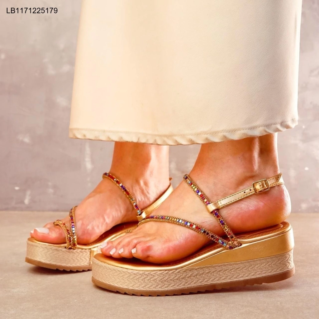 A Sandália Lizz Bela 35040 é a peça-chave para um verão cheio de estilo e conforto. Este modelo combina a tendência da altura com a alegria das cores, sendo ideal para compor looks que vão do passeio casual a eventos descontraídos [Visual: Sandália plataforma com strass multicor].