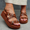 Design de Tiras Cruzadas: O cabedal é elegantemente estruturado com tiras largas e cruzadas sobre o peito do pé, proporcionando um ajuste firme e um visual sofisticado.