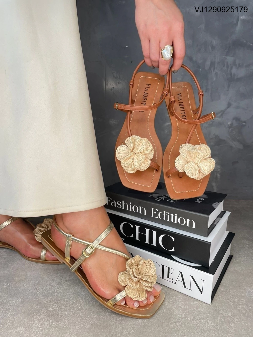 A Sandália Via Júpiter 8000.8216 combina charme artesanal com conforto para o dia a dia. Seu design delicado traz tiras finas em tom caramelo, flor texturizada em fibras naturais e acabamento metálico suave que agrega um toque de sofisticação. A palmilha acolchoada e o solado sintético estável garantem leveza e confiança em cada passo — ideal para momentos casuais ou ocasiões que pedem estilo discreto e muito conforto.